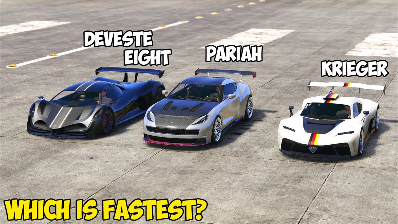 Mar 12 2021 The Deveste Eight is a charmer when it comes to looks and when you mix in its incredible speed and performance the car is a must-have in GTA Online. The Pariah is one of the fastest sports cars in GTA 5. May 19 2020 The Principe Deveste Eight lives up to its clever pun of a name and has a top speed that puts most other cars in the game to shame.