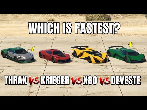 Jul 25 2019 Yeah the Deveste still has a higher top speed and acc. Select two GTA V Vehicles to Compare. Previously the fastest supercar around my short-heavy corners test track was the Deveste 8 with a time of 1053 the Thrax did it in 1048 in just the third attempt and i dare to say it was due to the handling of the Thrax.